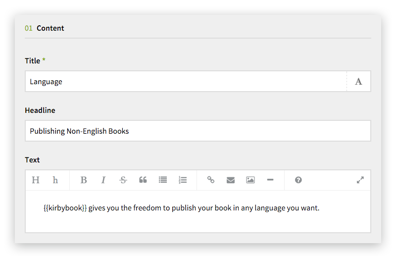 - This is where you add the pages content. You may use all supported Markdown and Kirbytext features (see all available Typography) as well as Includes and Replacements.